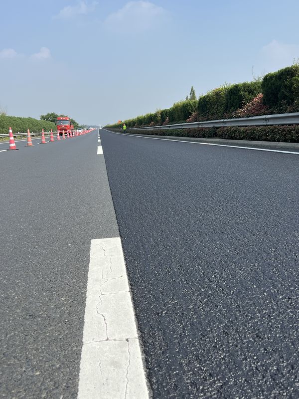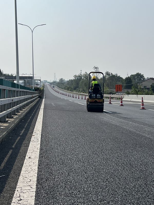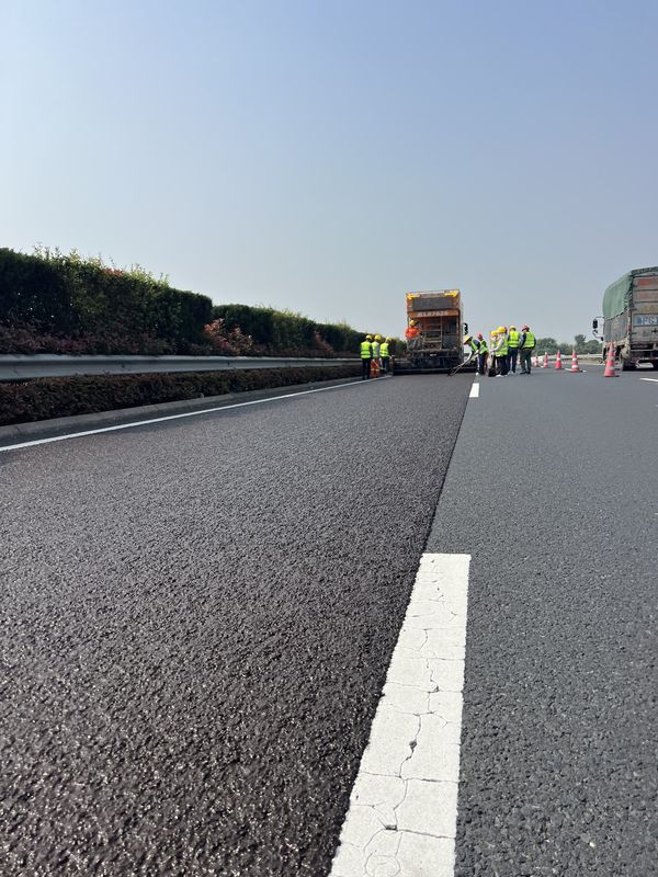 SBS高黏乳化瀝青冷拌冷鋪,單粘徑超薄低噪抗滑磨耗層施工現(xiàn)場(chǎng)。